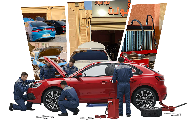 نقدم مجموعة متكاملة من خدمات صيانة وتصليح السيارات تشمل: فحص كمبيوتر، تغيير زيوت وفلاتر، تصليح المحركات والجير، كهرباء السيارات، برمجة، تكييف، وخدمات العناية الكاملة للسيارة. هدفنا هو إنك تطلع من الورشة وسيارتك بحالة ممتازة وآمنة.